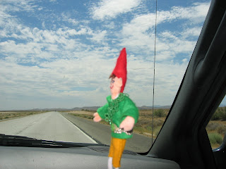 THIS is the traffic we've encountered on this stretch. It's overcast, as you can see, and the temperature at 10:30 AM was 98 degrees Fahrenheit. The day before in the San Joaquin Valley it was 109 degrees! Too hot for man nor Leprechaun!We arrived at Big Bear at lunch time ~ so we ate and checked in at our digs; and took an afternoon nap! Tomorrow we surprise Trudy, on her birthday, with her framed counted cross-stitch that my adopted "mom" finally finished. I don't know if she'll get a picture of the finished piece or not...I guess we'll all be surprised. Oh well, it's NOT tatting! hehehe She might eventually have a picture of herself on this trip; although clearly, I AM the STAR.